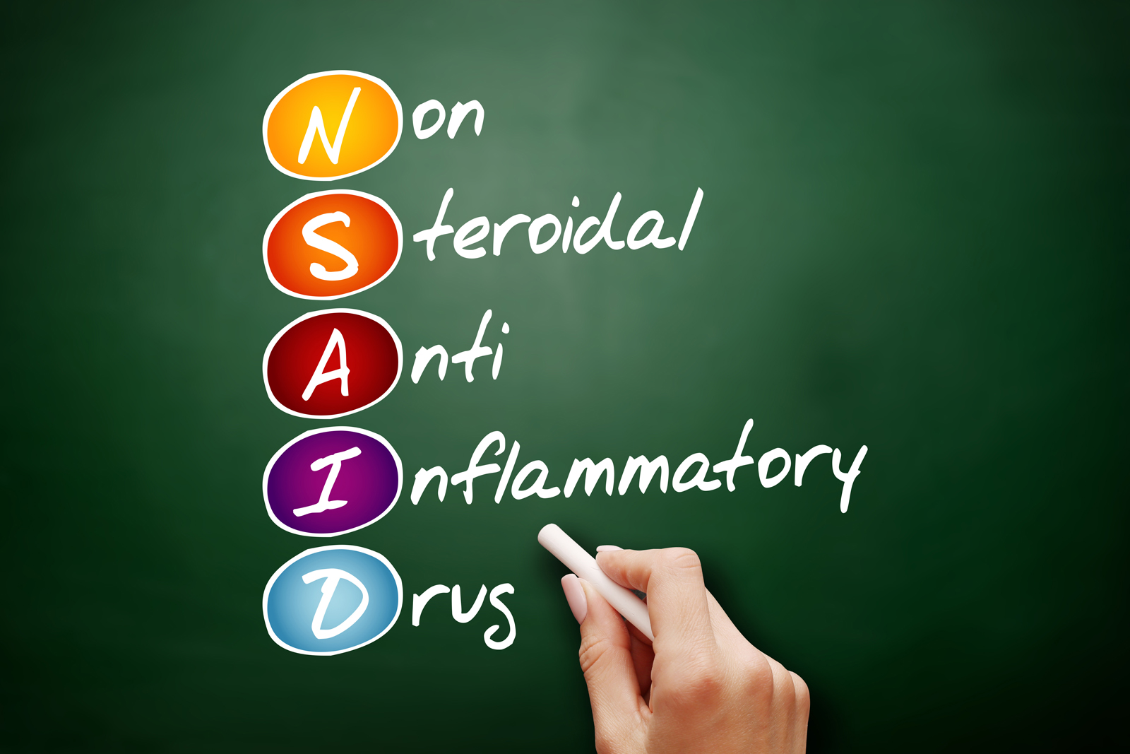 NSAIDs (Non-Steroidal Anti-Inflammatory Drugs)- Long-term, high-dose use of some NSAIDs, inhibits bone healing up to 25%. Prostaglandins (PGE2), produced by the COX-2 enzyme, play an important role in bone remodeling. Certain NSAIDs, particularly COX-2 inhibitors, inhibit the endochondral ossification pathway, that is, the bone calcification that replaces cartilage of the soft callus. If NSAIDs are used only during the peri-operative period (before, and a few days after the fracture), there seems to be no significant slowing of bone healing. Ibuprofen has less of a deleterious effect than other NSAIDS, such as naproxen. There is debate regarding if, and by how much aspirin may delay bone healing. The studies are mixed. Examples of NSAIDs are: