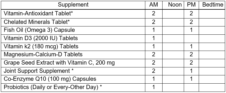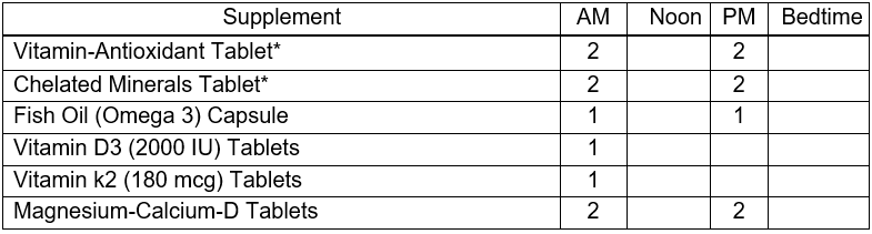 Ingredients that I like to see provided collectively by vitamin-antioxidant & chelated mineral tablets